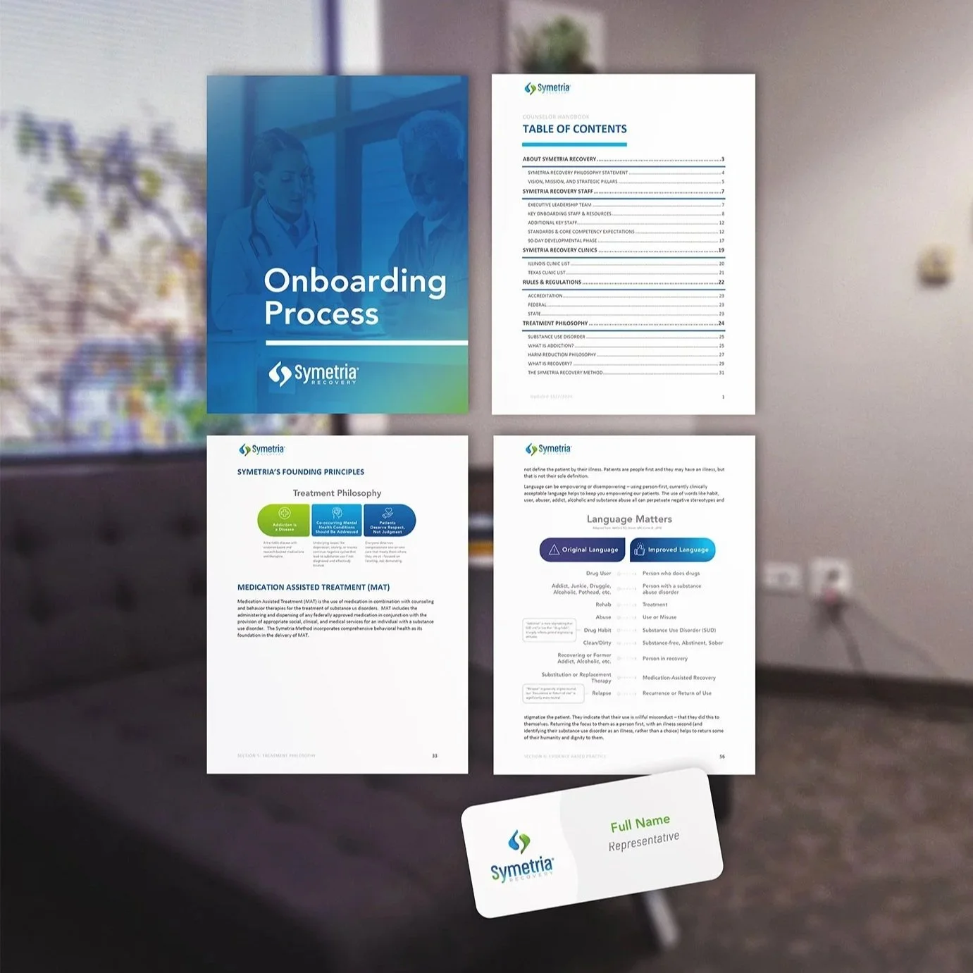 Over 6 months we set visual standards for B2B, internal, and external-facing designs. This included corporate handbooks & documentation, patient handouts, and business development presentations.